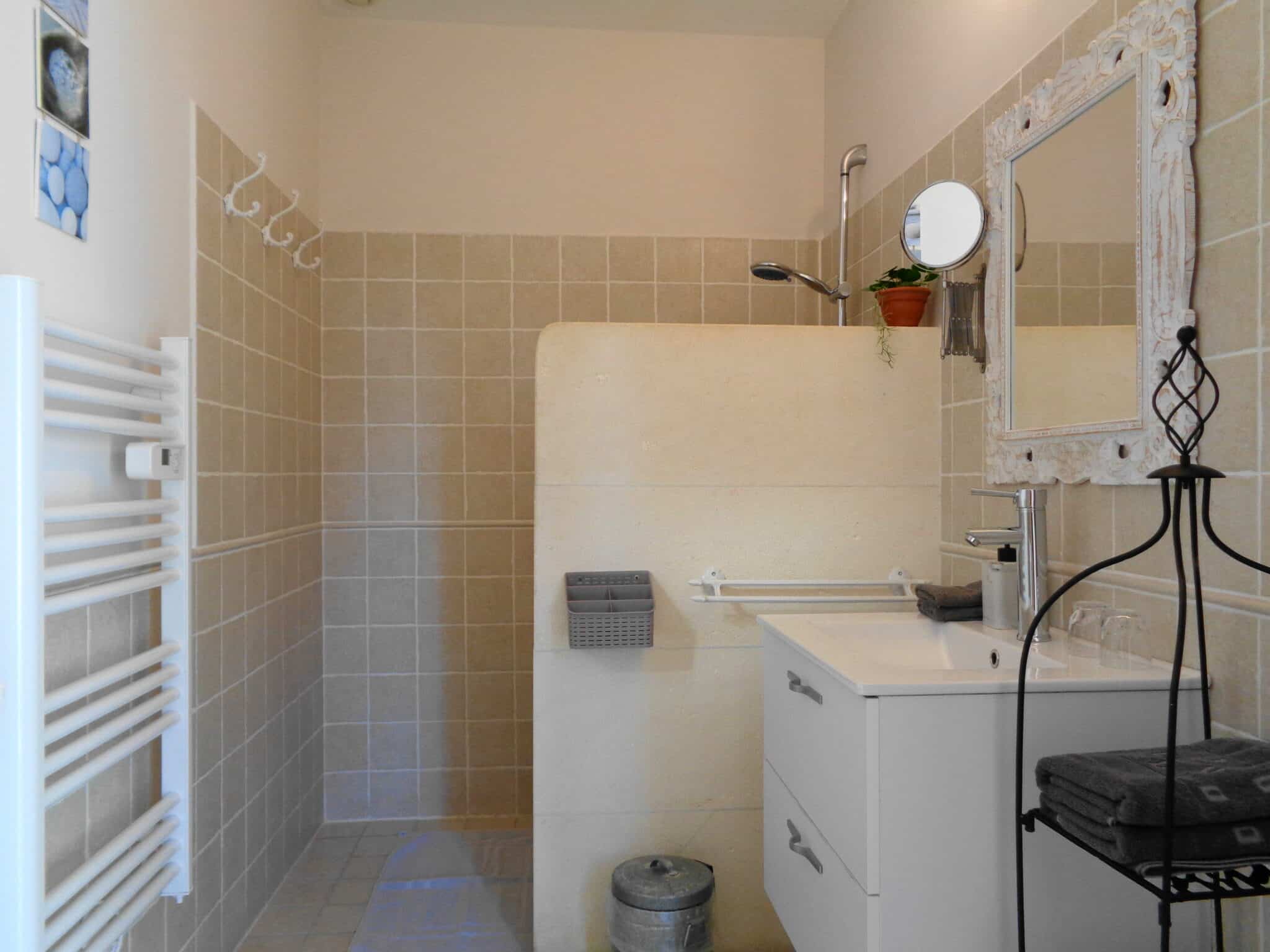 Al piano terra, questa camera nel Luberon in Provenza, beneficia di un ingresso indipendente e si affaccia direttamente sul suo spazio esterno privato, tranquillo e intimo, ideale per la lettura e il relax.